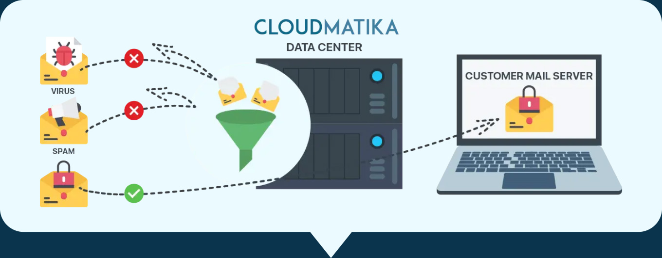 Cloudmatika Mail Buster is a cloud-based email security platform with advanced incoming and outgoing filtering. It blocks spam, viruses, ransomware, and malware before they reach your server or inbox—keeping your email secure and your team productive.